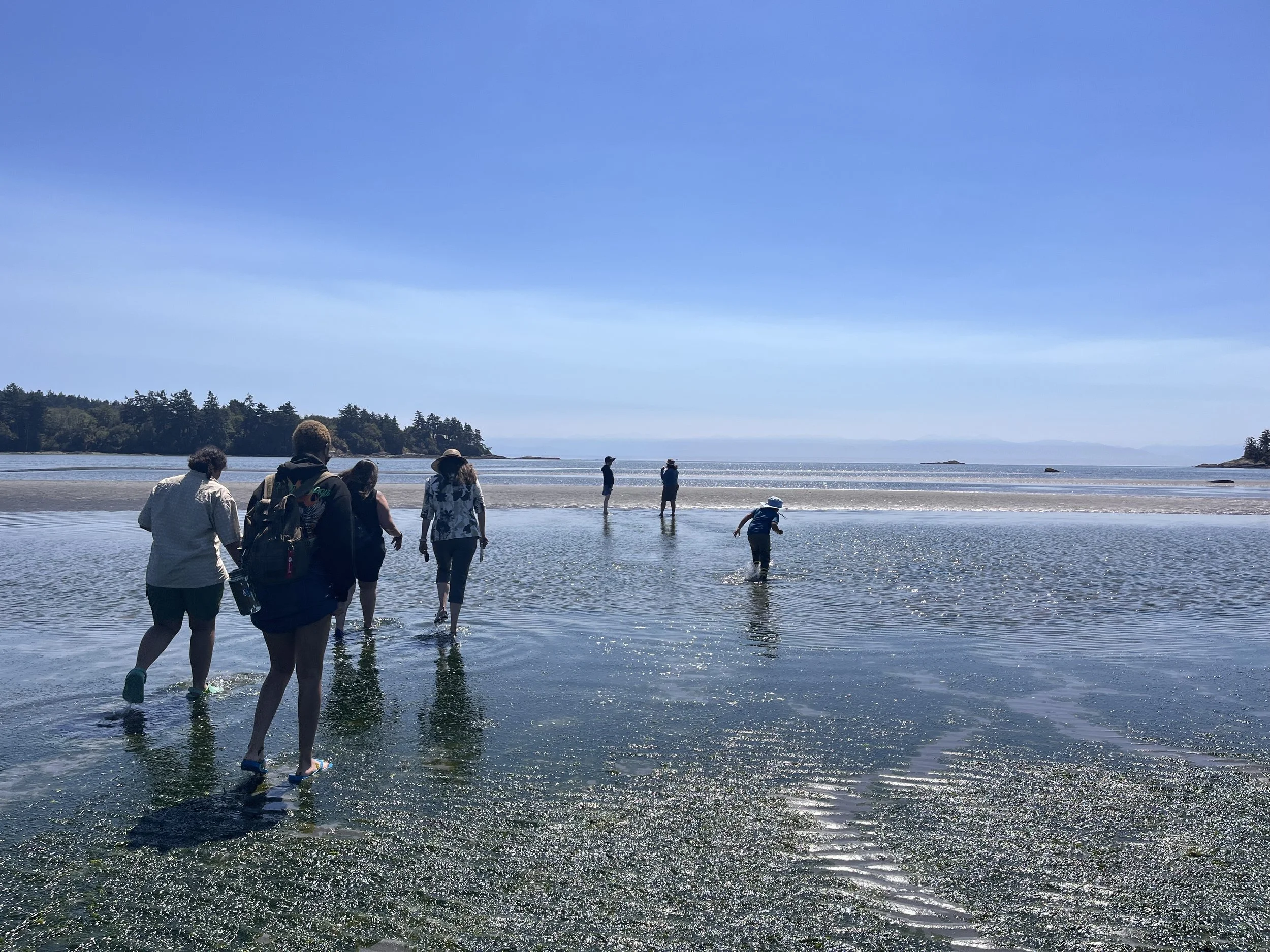 MIT students and community partners from Friends of the San Juans during a research trip to an eel grass meadow (tidal zone) on San Juan Island, WA.